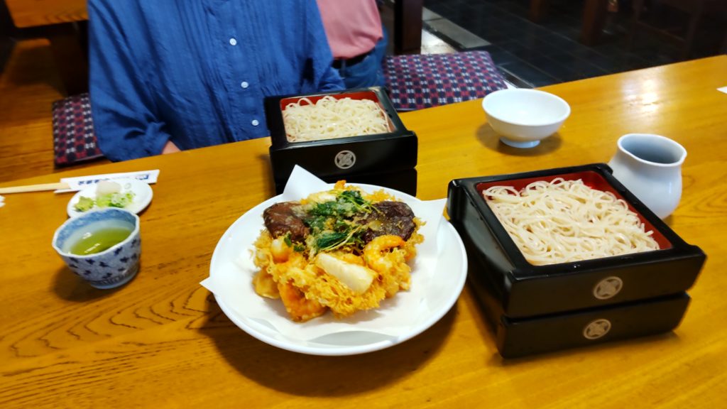 かき揚げてんぷらの美味しさは格別です、「美味い!」と思わず声が出るほどです。蕎麦は一人2段で、少なめですがてんぷらが大きいので私のとっては丁度満腹になりました。