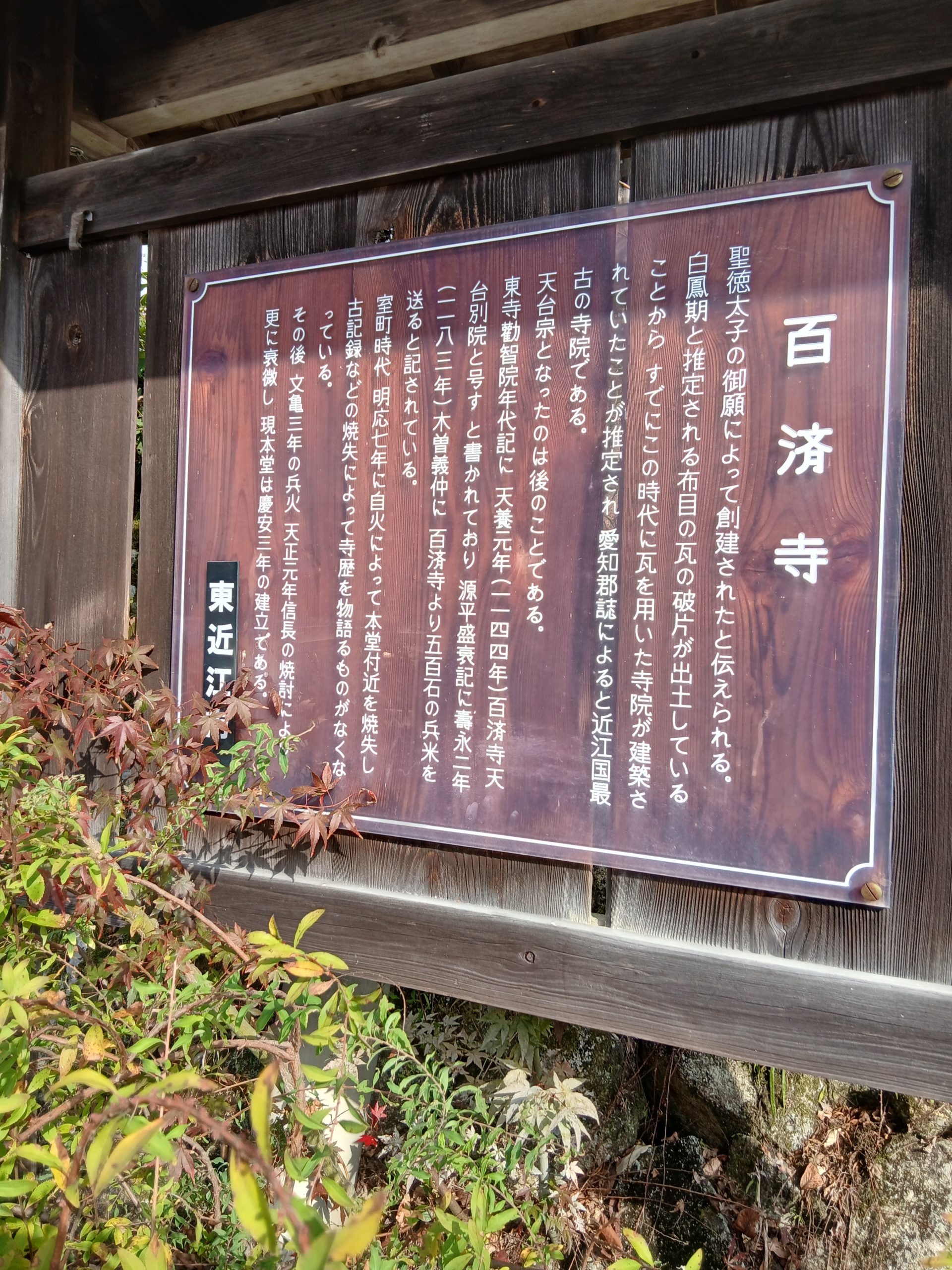 永源寺の後は湖東三山の代表として名高い百済寺を訪れました。やはり紅葉の名所としても有名です。奈良時代に聖徳太子が建立した寺として有名です。仏教伝来に功があった百済(くだら)からの渡来人を僧として迎えたとされます。やはり山沿いに建てられた寺院なので石段が永源寺以上に厳しく急こう配で、本堂まで登るのが大変でしたが、きれいな紅葉がいやしとなって疲れを忘れさせてくれます。